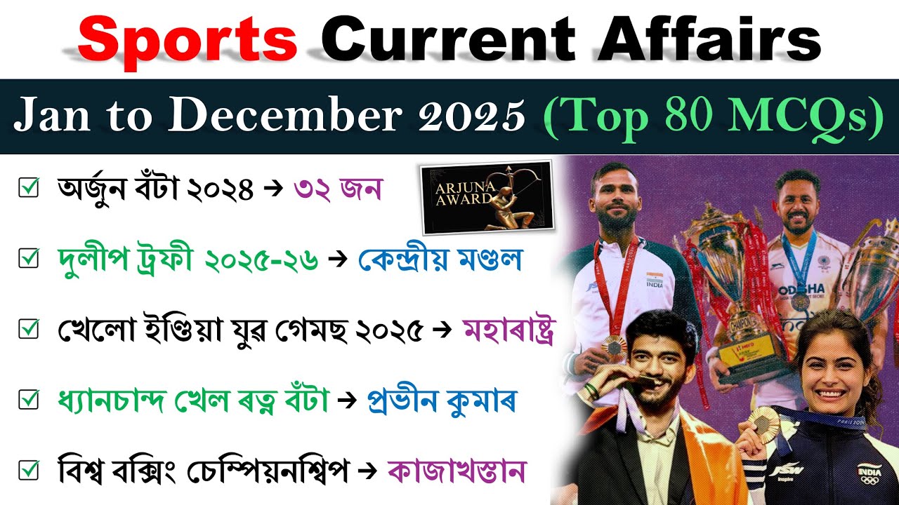 Sports Current Affairs 2025 🏄| Jan to Dec 2025 (Top 80 MCQs) | with ...