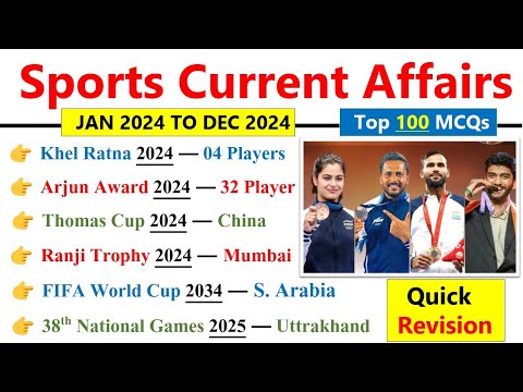 Sports Current Affairs 2025 | January To December Current Affairs 2024 ...
