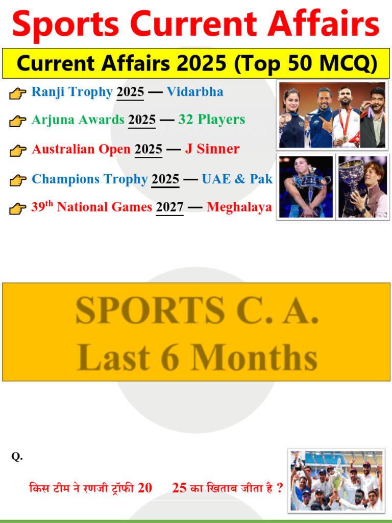 Sports Current Affairs 2025 | Sports 2024-25 Current Affairs | Sports ...
