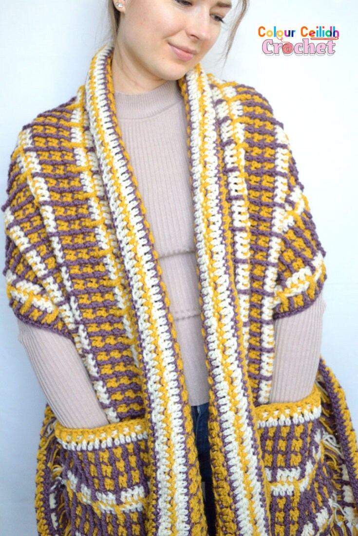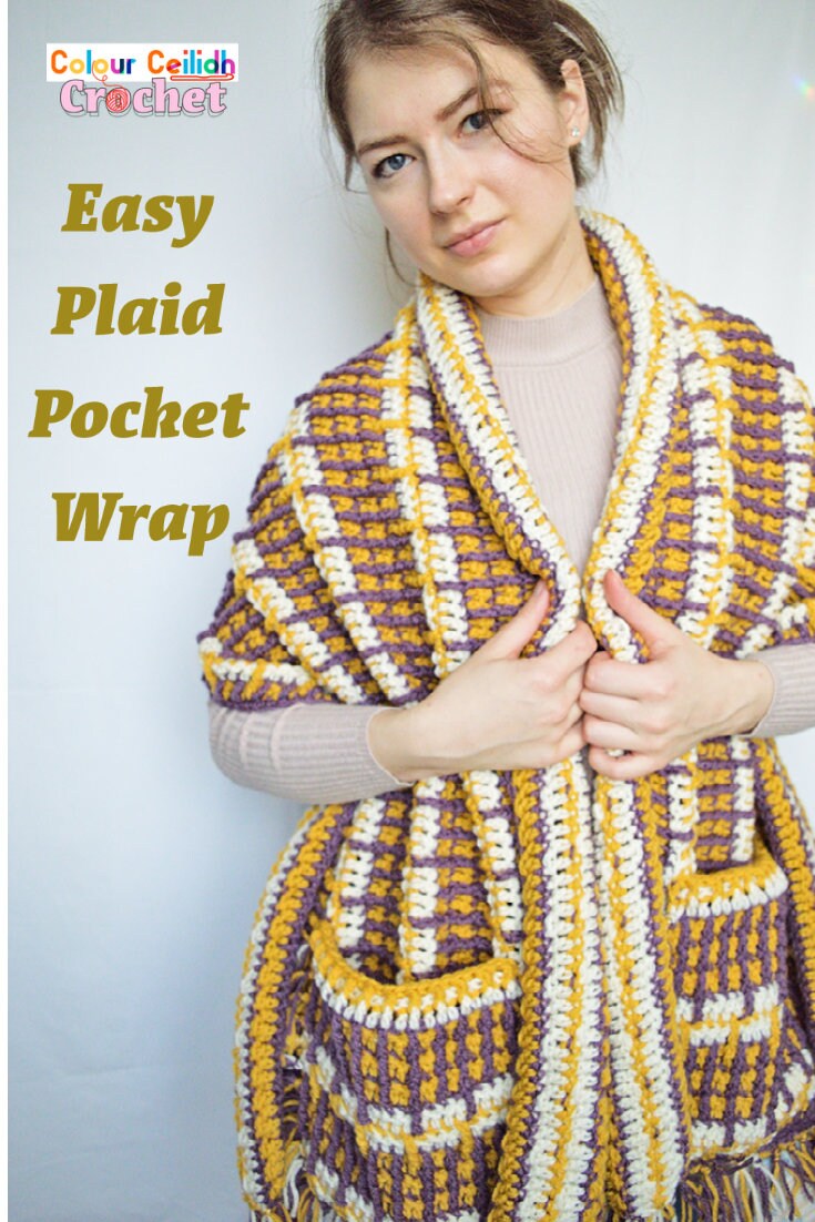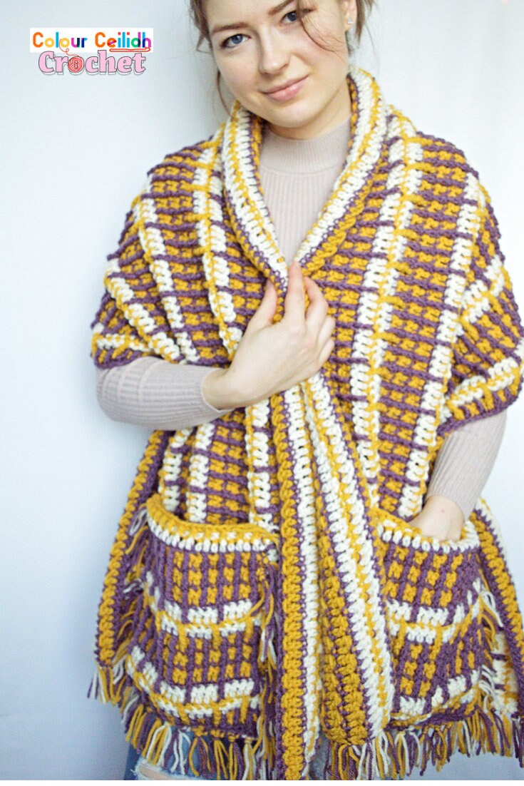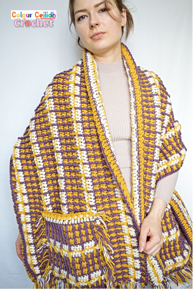 Crochet Pocket Shawl Pattern PDF | Easy Plaid Stitch for Blankets ...