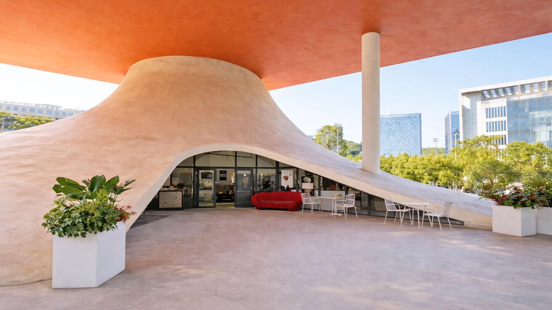 Eine geheime Bibliothek, die wie ein riesiger Pilz gestaltet ist und ...