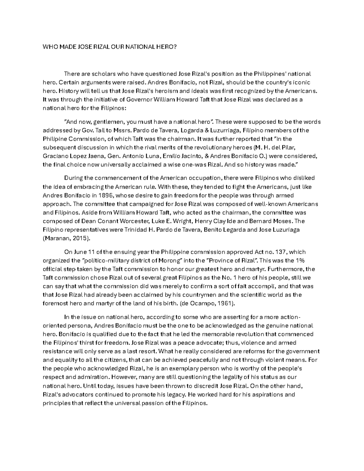 Who Declared Jose Rizal as Our National Hero? - Studocu