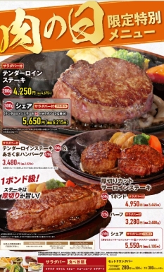 【あさくま 2月の肉の日】限定メニュー販売、厚切りサーロインステーキ・テンダーロインステーキ&あさくまハンバーグなど、2月23日から3日間限定 ...