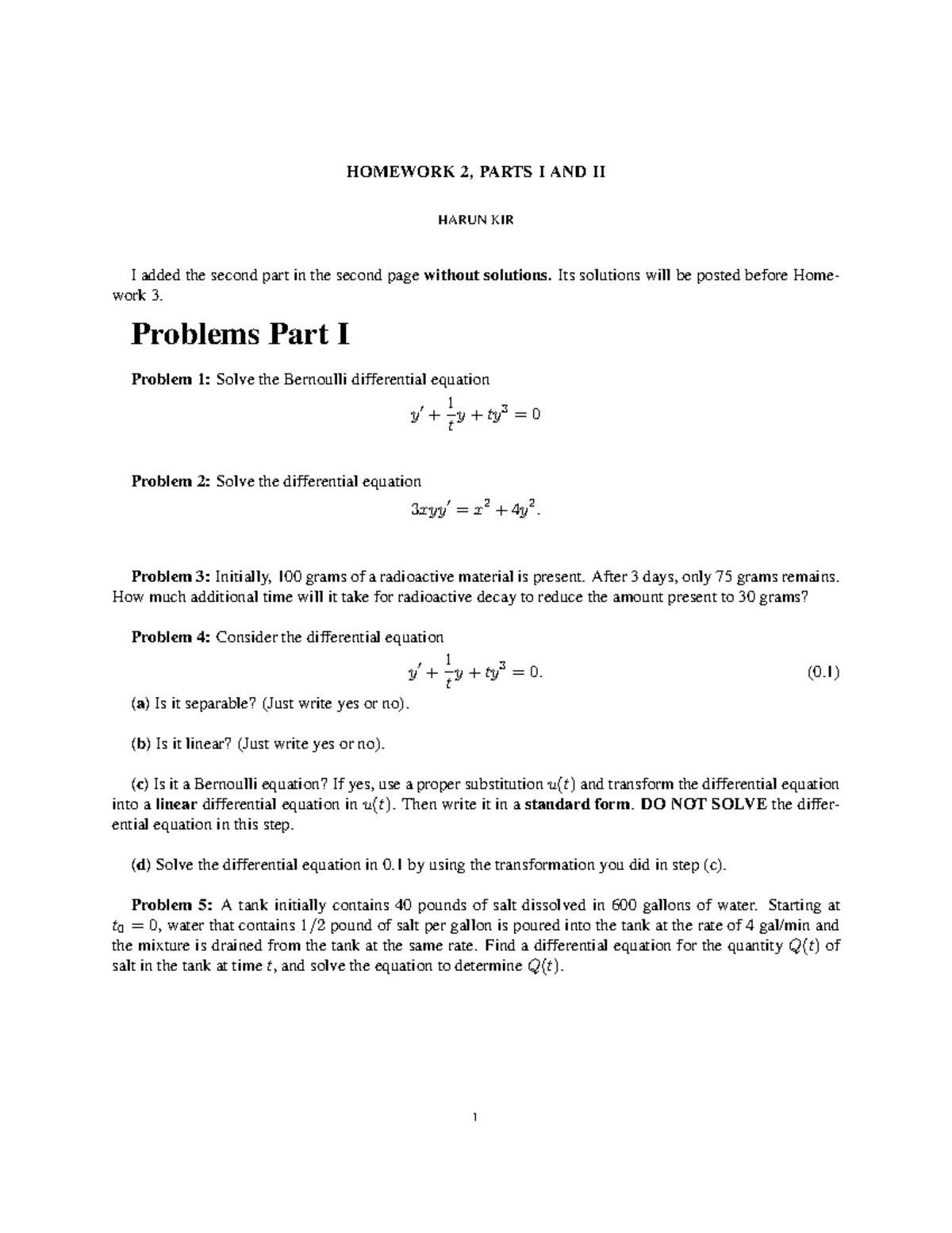 Homework 2 Parts I and II Math 225 Fall 2023-1-2 - HOMEWORK 2, PARTS I ...