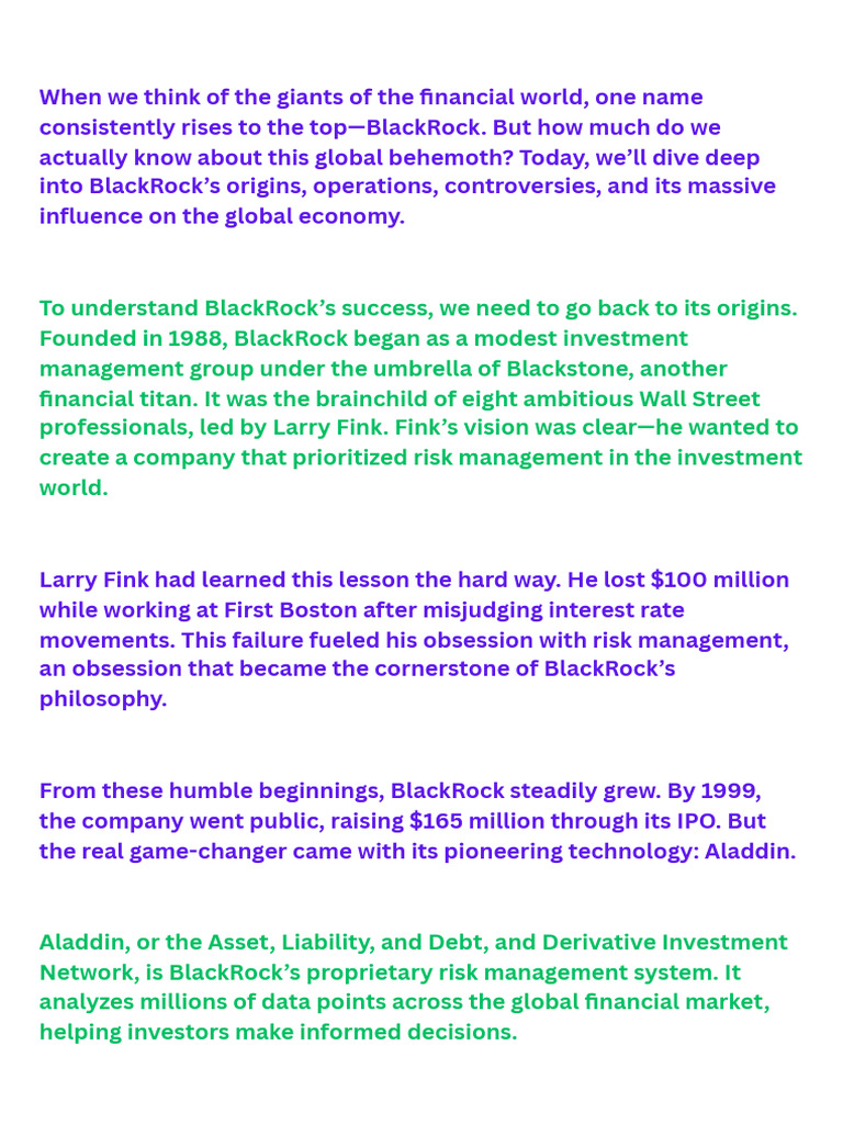 BlackRock: Origins, Influence & Controversies | PDF | Black Rock ...