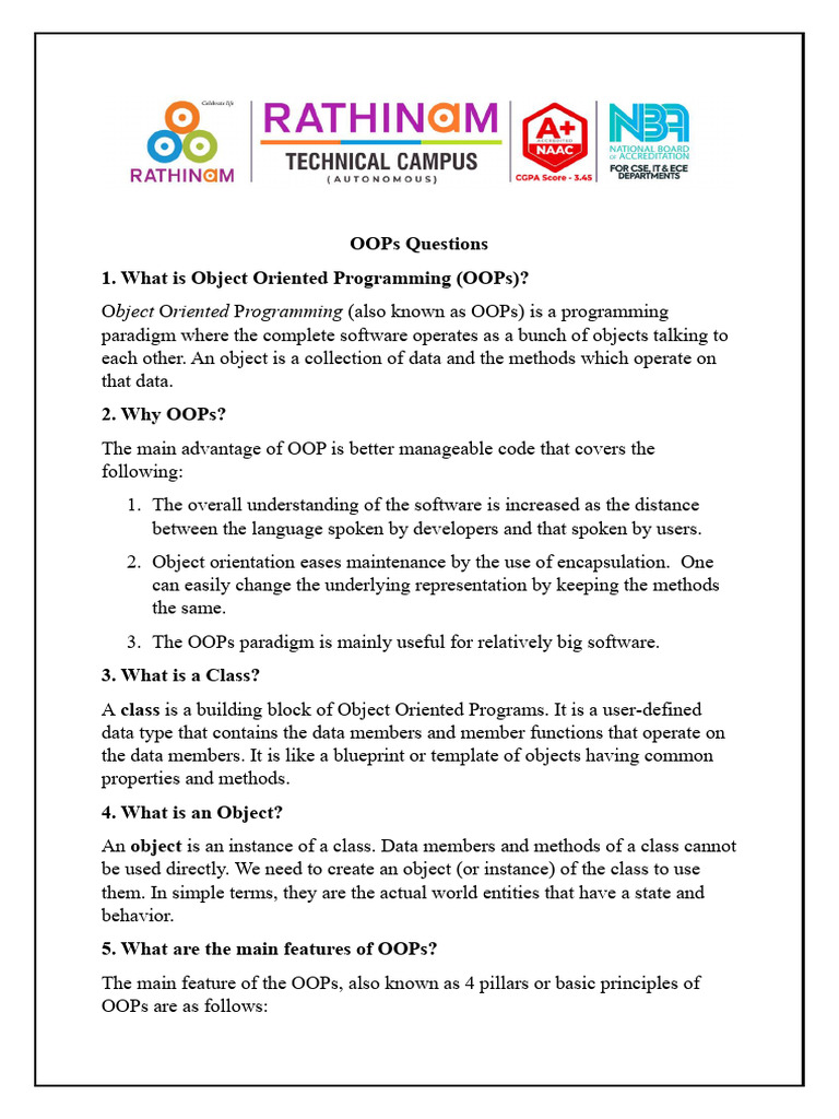 OOPs Questions (What Is What) | PDF | Programming | Constructor (Object ...