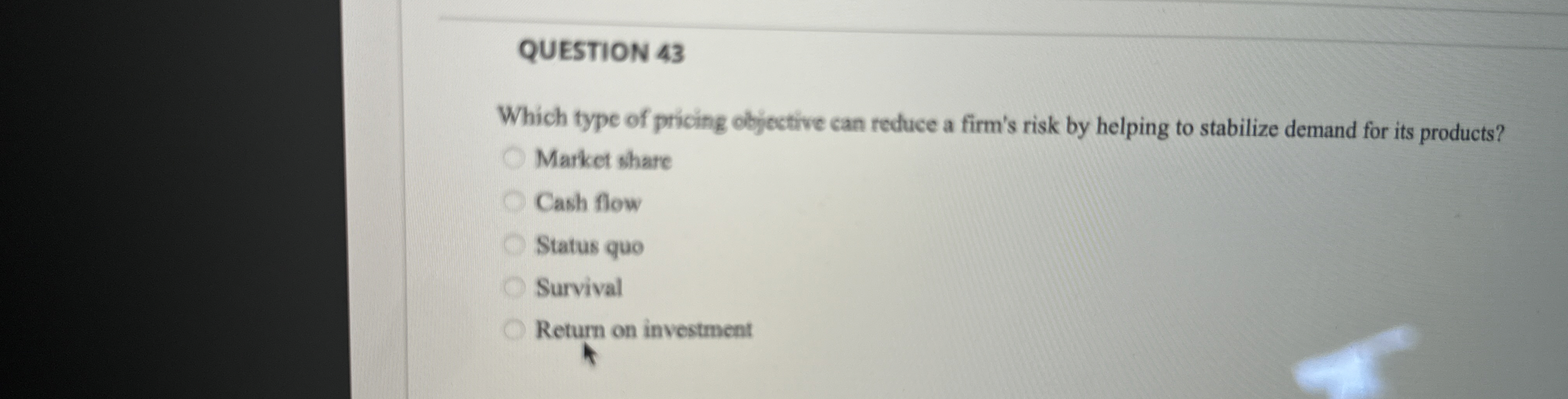 Solved QUESTION 43Which type of pricing objective can reduce | Chegg.com