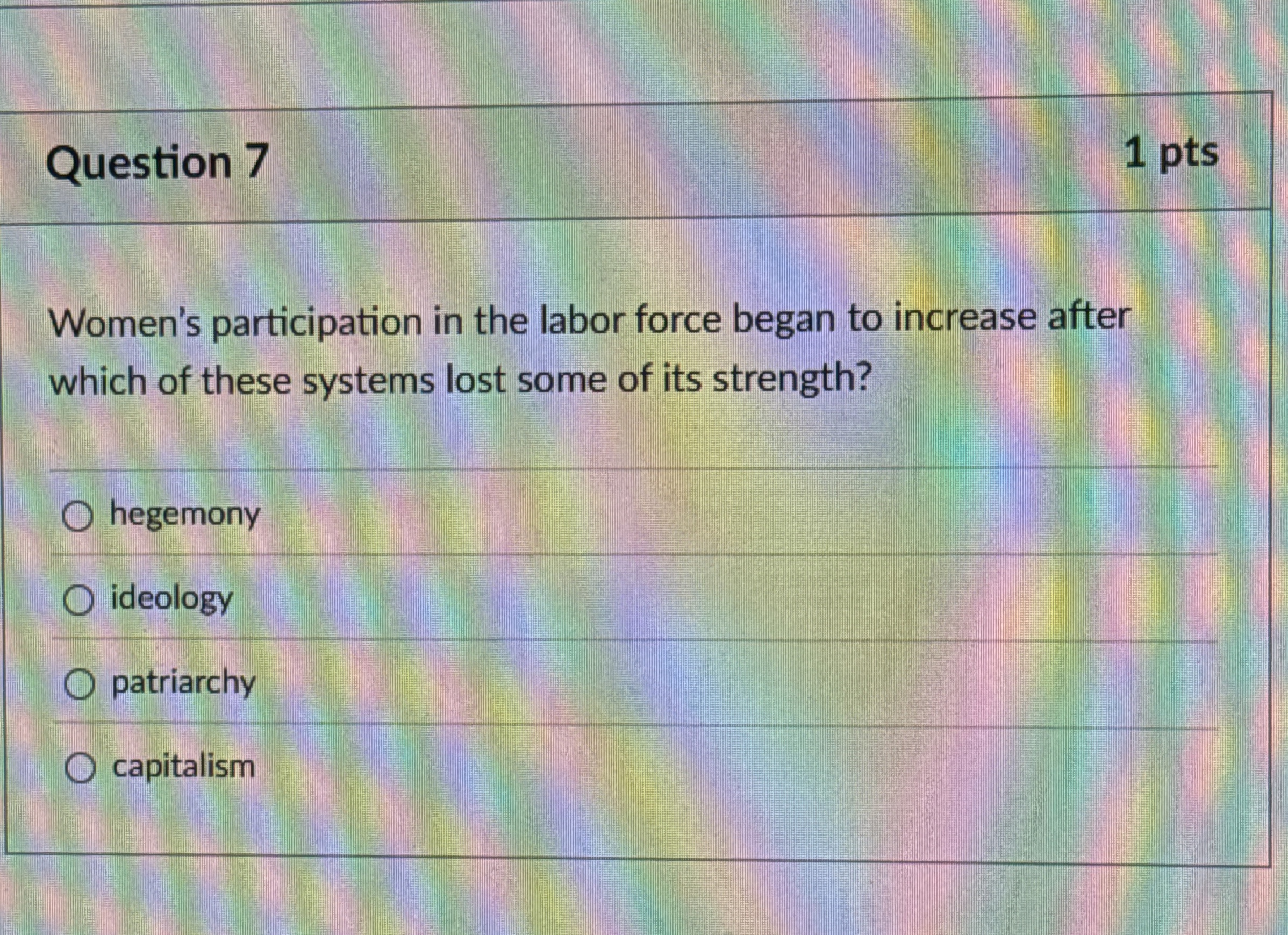 Solved Question 71 ptsWomen's participation in the labor | Chegg.com