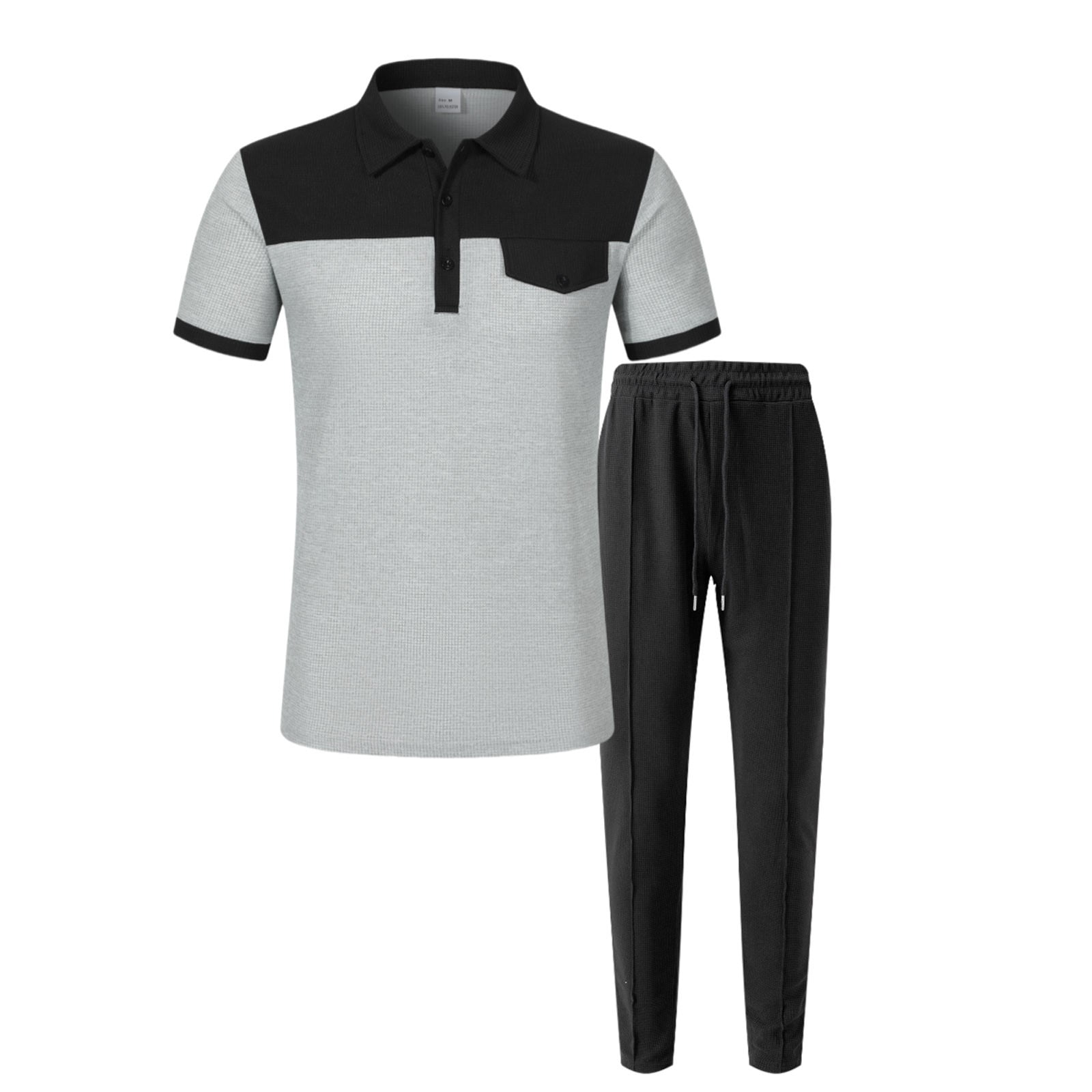 QHFBli Mens Waffle Knit Polo Shirt and Pants Set 25 Pieces Outfits ...
