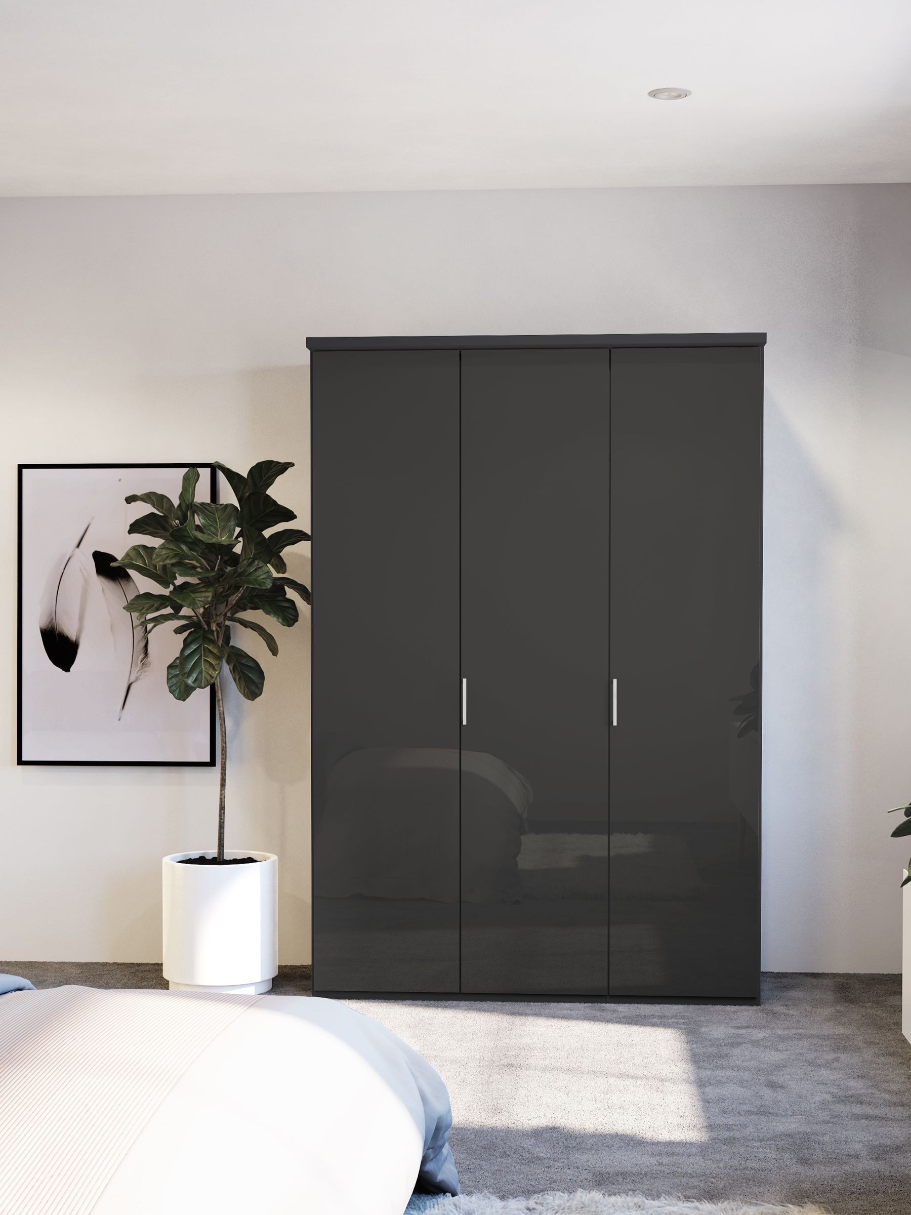Buy Wiemann Peyton Graphite Glass Semi Fitted Triple Wardrobe from the ...