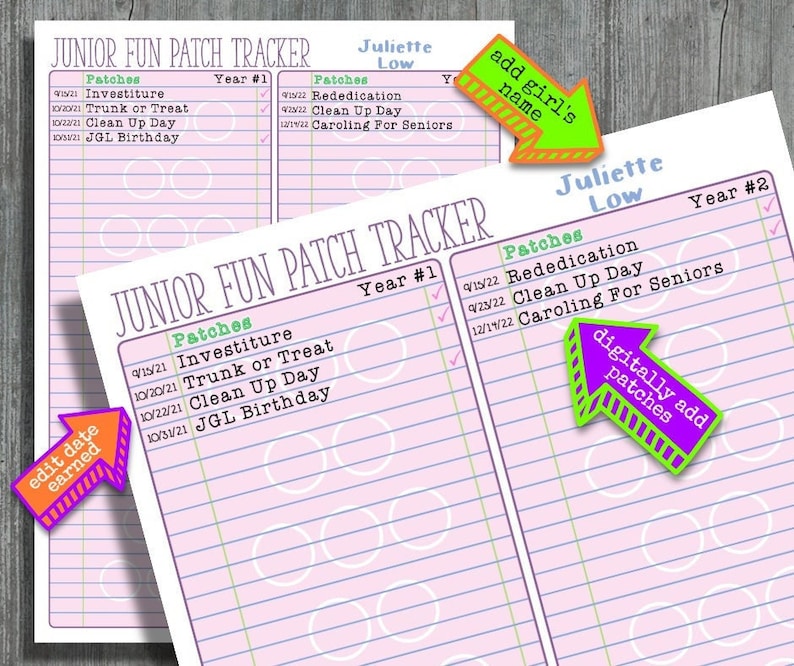 Junior Girl Scout FUN PATCH Tracker Checklist Chart Fillable Edit ...