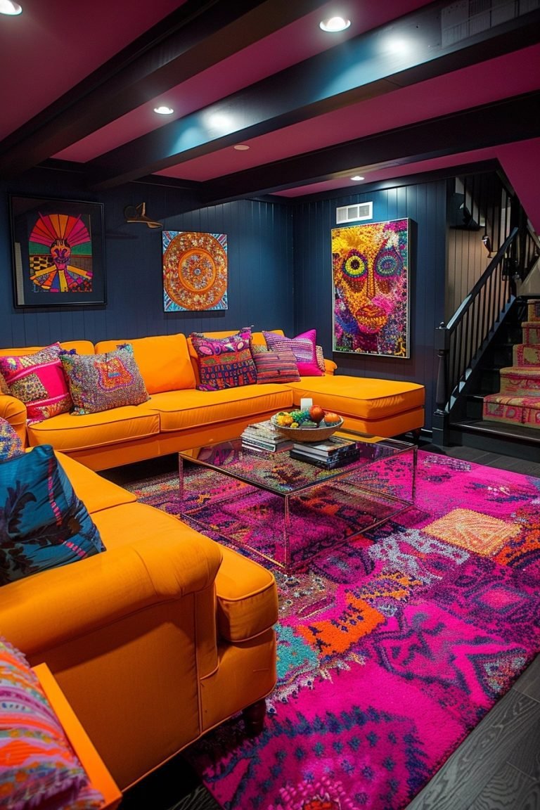 20 Bold Accent Colors to Make a Basement Living Room Feel Vibrant in ...