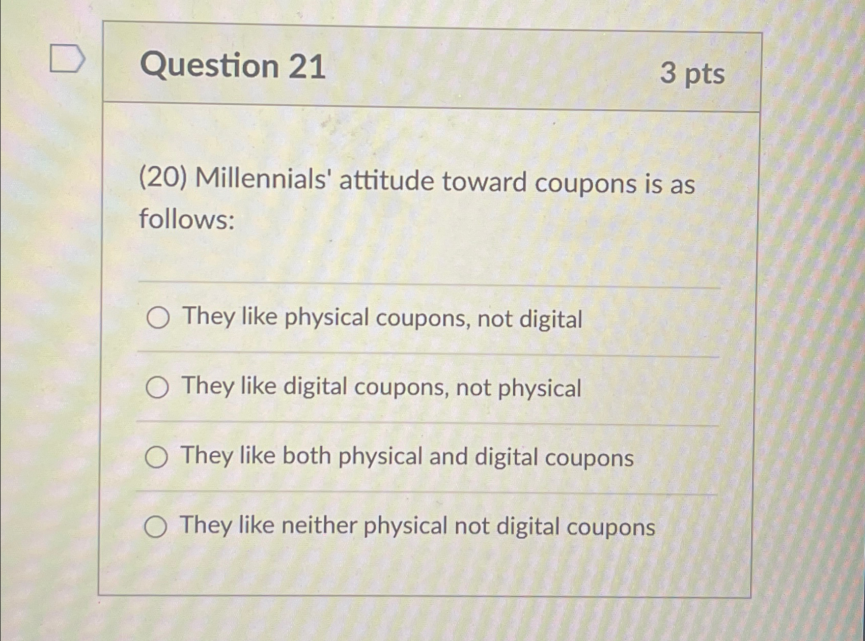 Solved Question 213pts(20) Millennials' attitude toward | Chegg.com