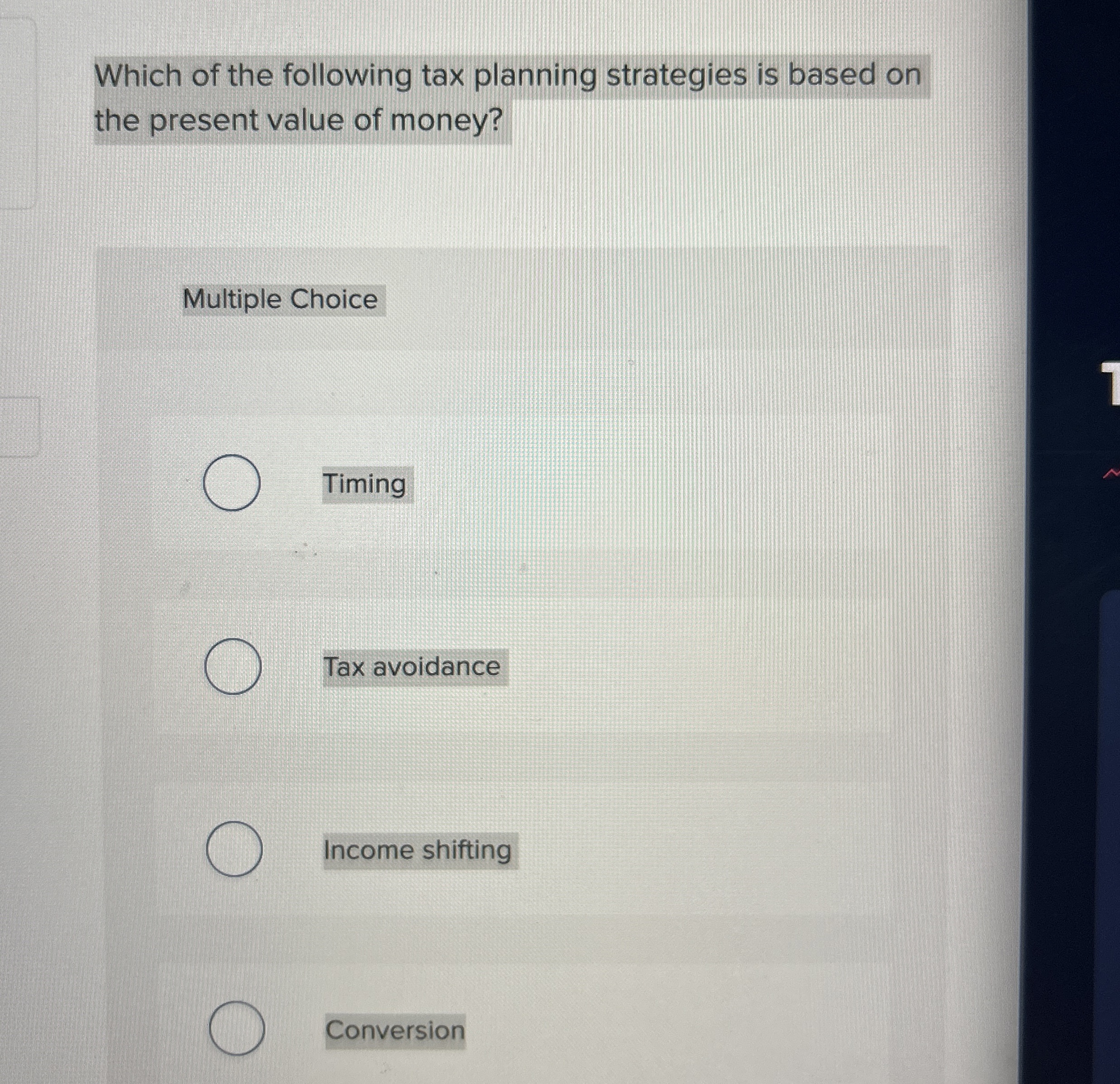 Solved Which of the following tax planning strategies is | Chegg.com