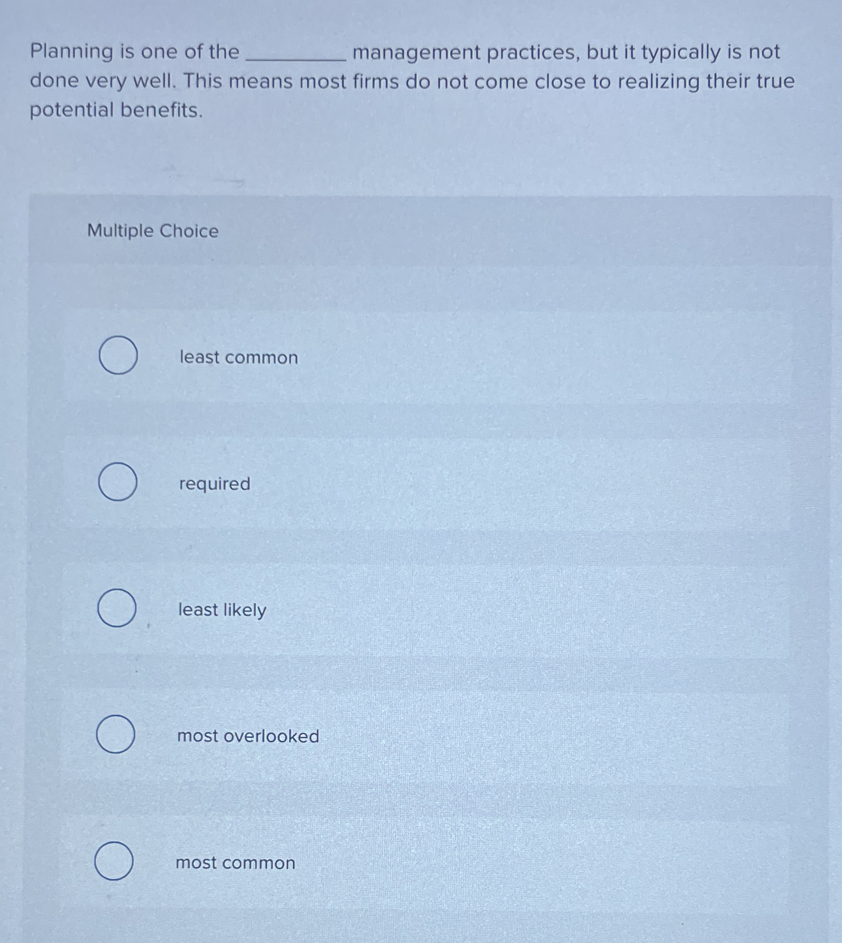 Solved Planning is one of themanagement practices, but it | Chegg.com