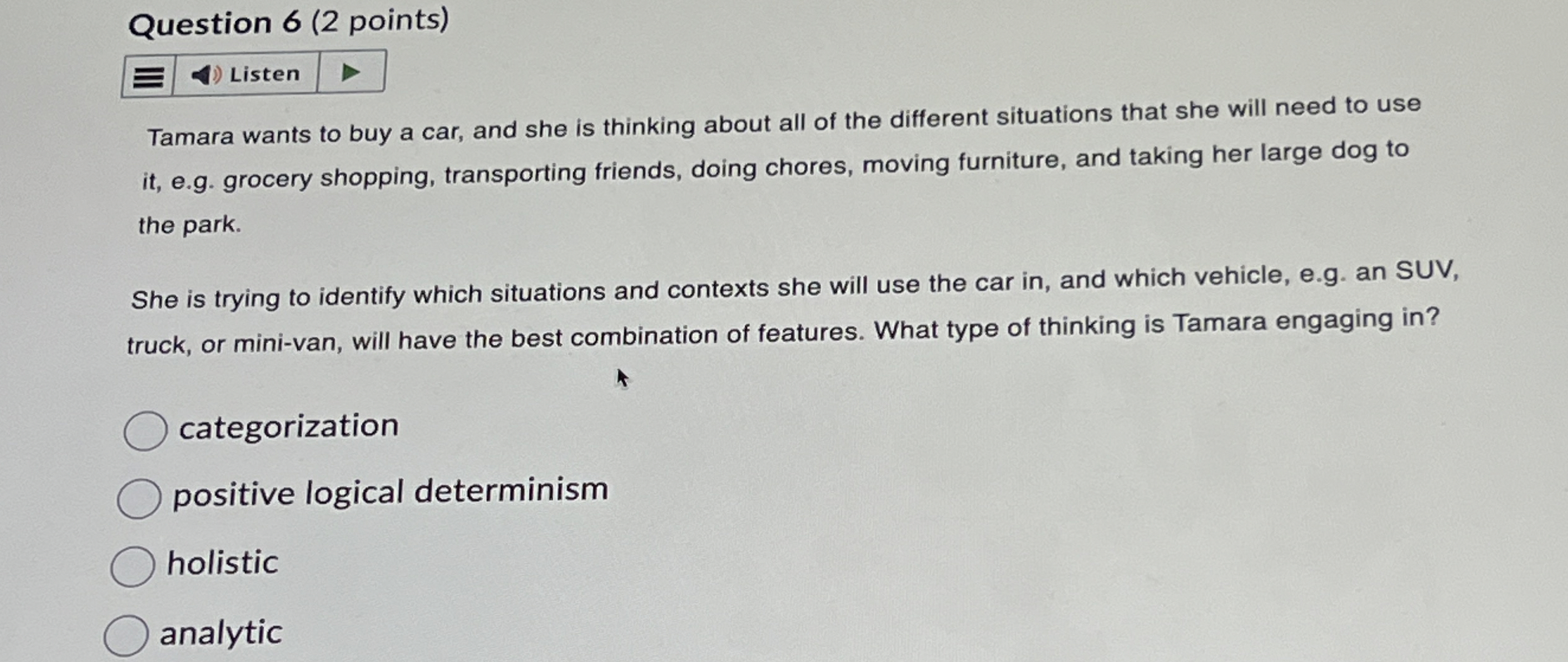 Solved Question 6 (2 points) Tamara wants to buy a car, | Chegg.com