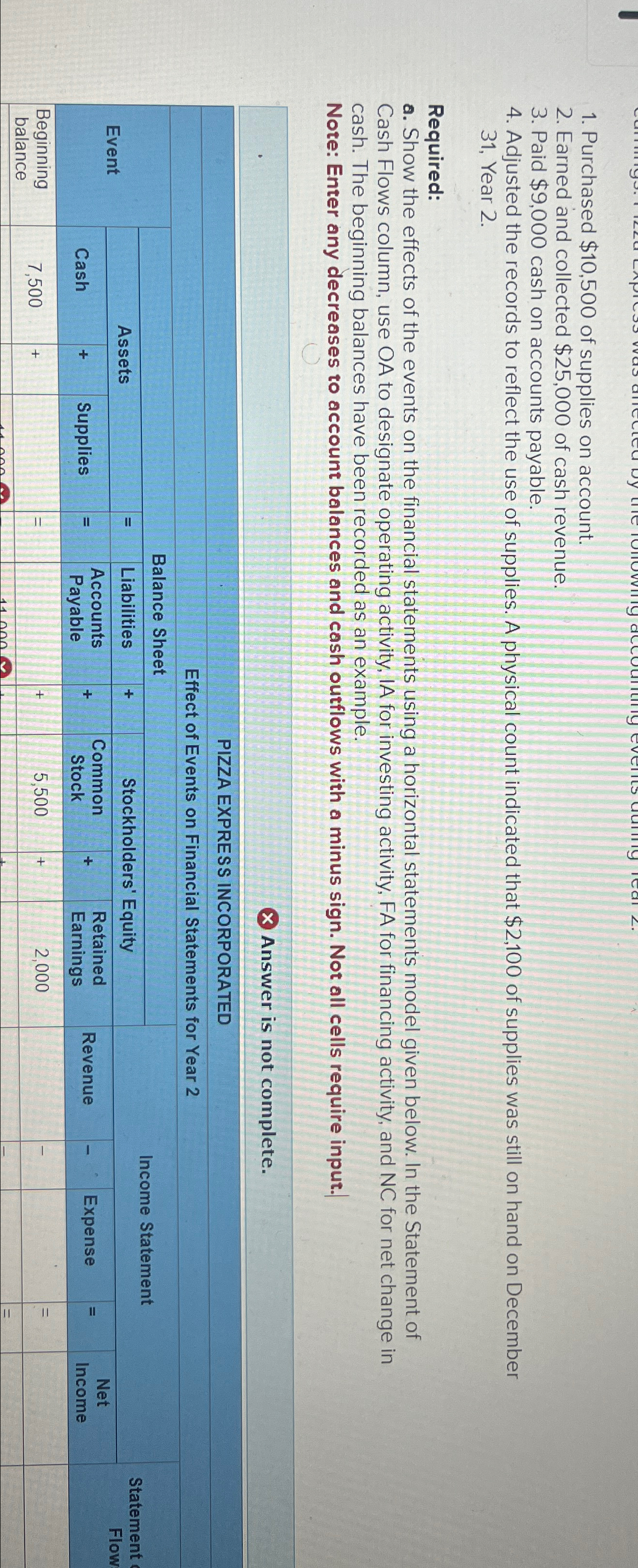 Solved Purchased $10,500 of supplies on account.Earned and | Chegg.com