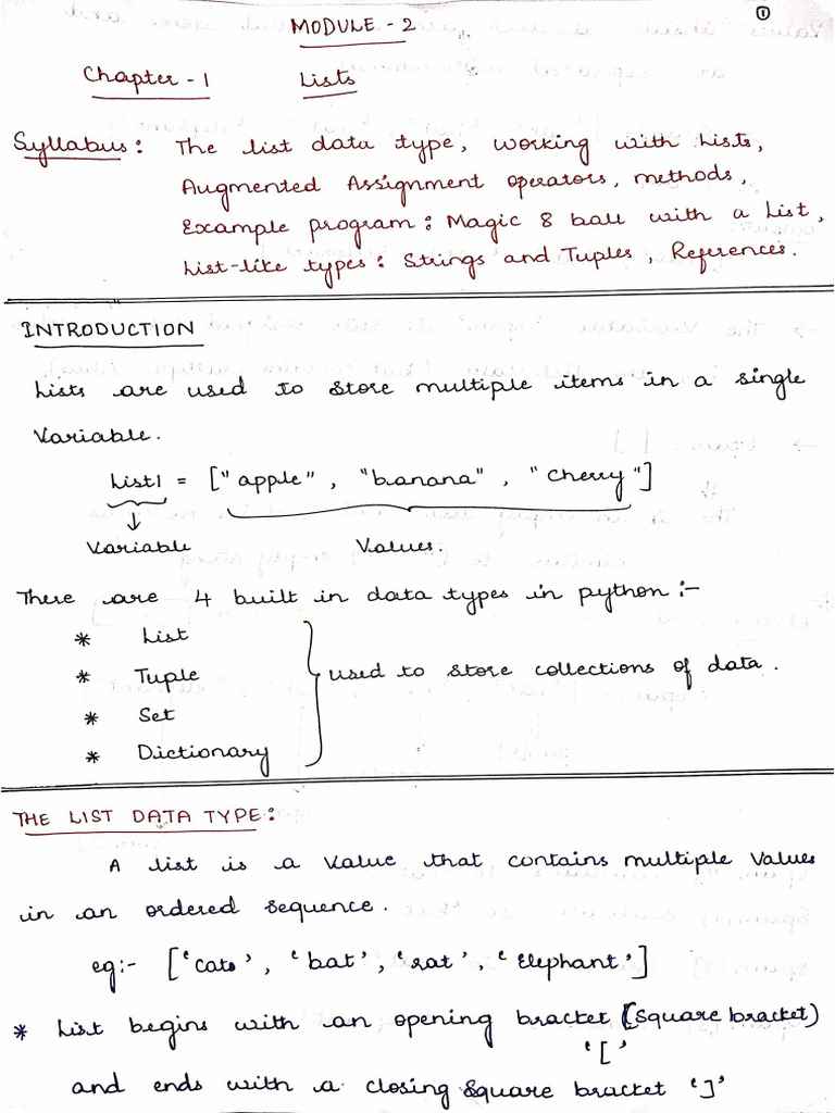 Python Module 2 Lab notes - Module 2 Notes Created Chapter Chapter/ Mod ...