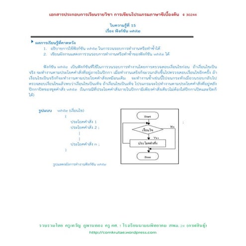 การวนรอบซ้ำด้วยคำสั่ง While - บทเรียน E-Learning วิชา การเขียนโปรแกรมภาษา