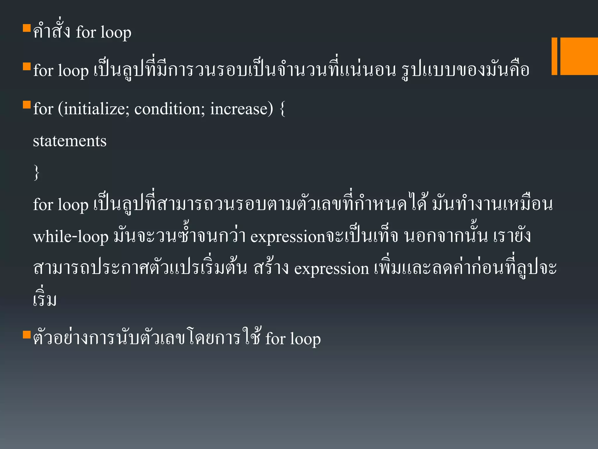 PPT - การเขียนคำสั่งควบคุมแบบวนซ้ำ PowerPoint Presentation - ID:3193102