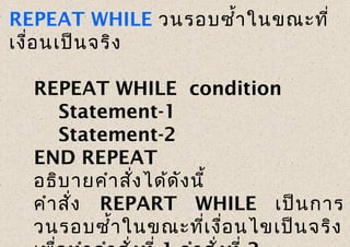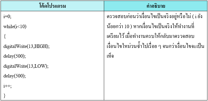 คำสั่งนี้จะให้โปรแกรมทำงานซ้ำ โดยจำนวนครั้งในการทำซ้ำจะขึ้นอยู่กับ ...