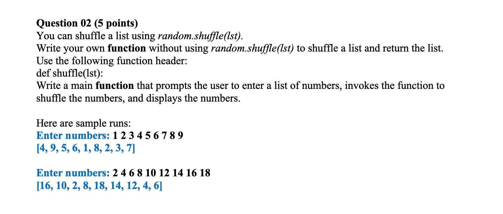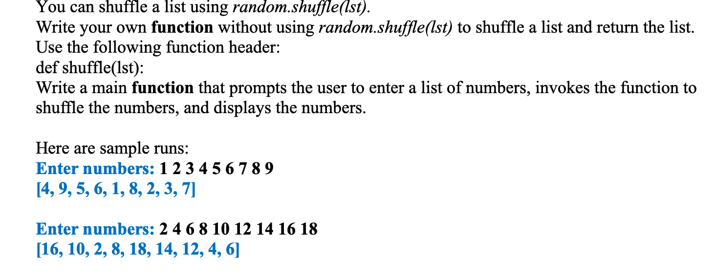 Solved (Random number chooser) You can shuffle a list using | Chegg.com