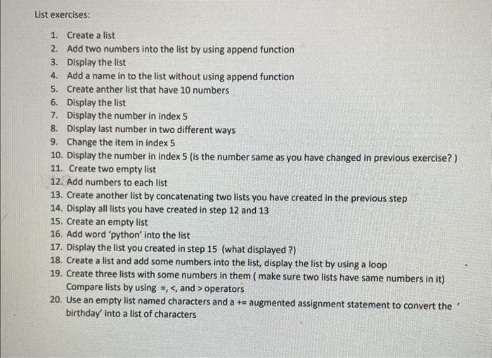 Solved 1. Create a list 2. Add two numbers into the list by | Chegg.com