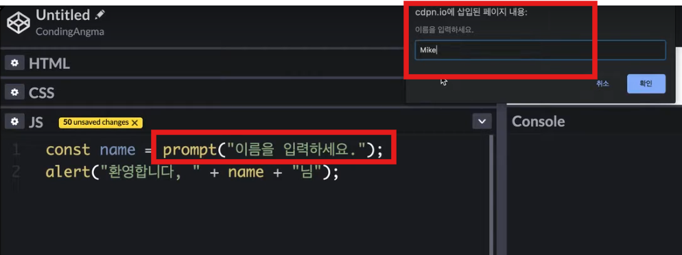 [JS] 자바스크립트 기초 _ alert, prompt, confirm