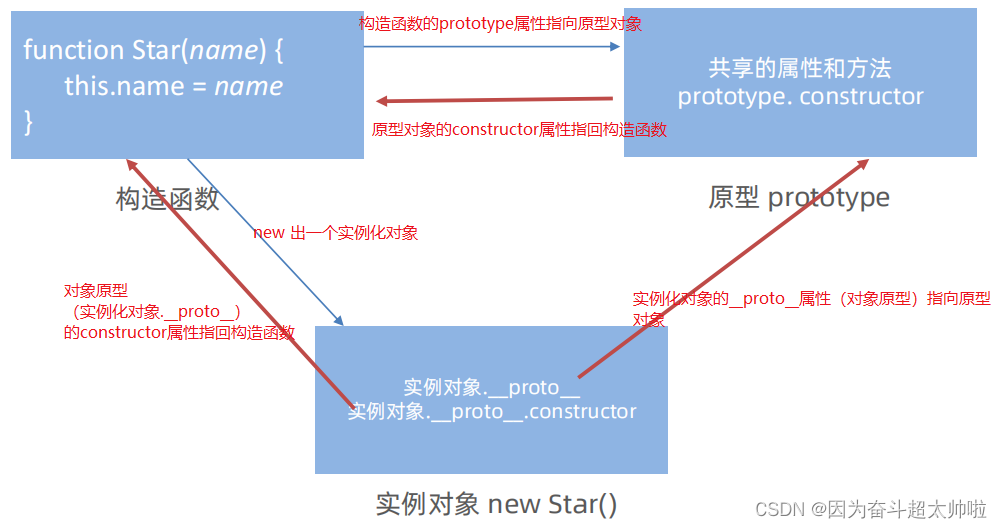 5分钟带你搞懂 构造函数、原型对象、实例对象、原型、原型链_简述一下对原型,构造函数以及实例的理解-CSDN博客