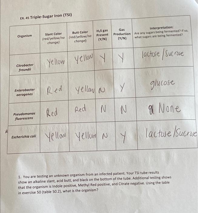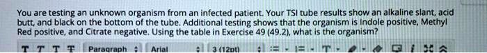 you are testing a unknown organism from an infected patient your tsi ...