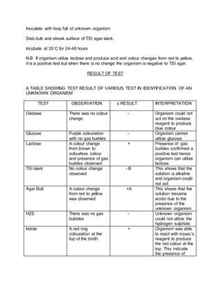 Solved IDENTIFICATION OF UNKNOWN BACTERIA Organism tube | Chegg.com