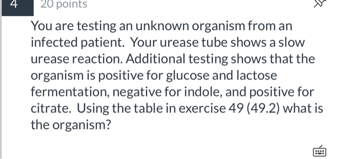 Solved 4 20 points You are testing an unknown organism from | Chegg.com