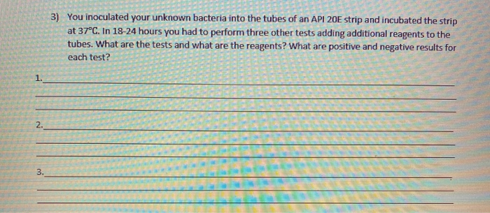 Solved 3) You inoculated your unknown bacteria into the | Chegg.com