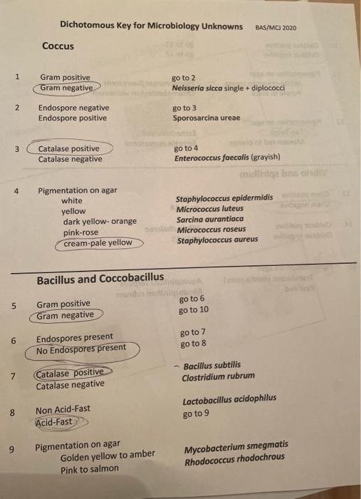 Solved Unknown Organism #1: Staphylococcus | Chegg.com