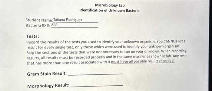 Solved Microbiology Unknown Identification Your unknown | Chegg.com