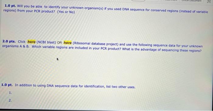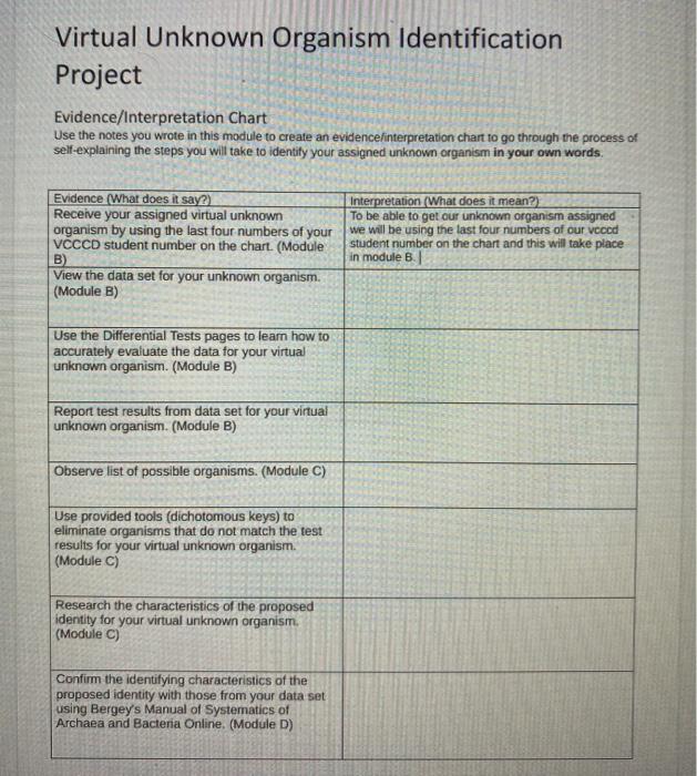 Virtual Unknown Organism Identification Project | Chegg.com