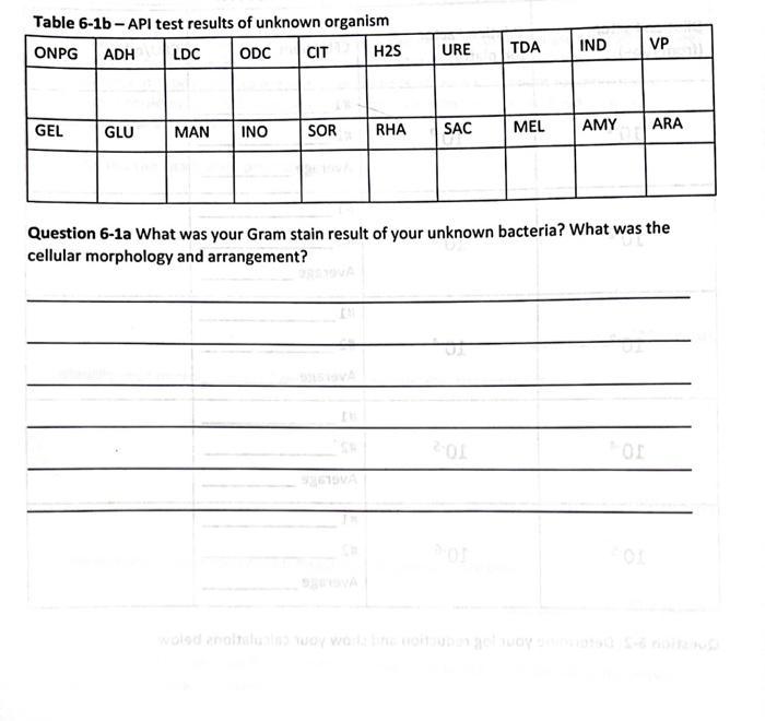 Table 6-1b - API test results of unknown organism | Chegg.com