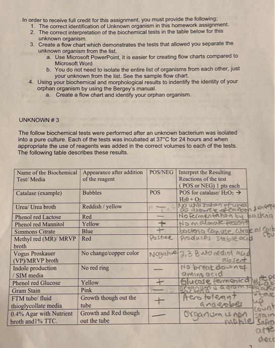 Solved Identify the unknown organism using the following | Chegg.com