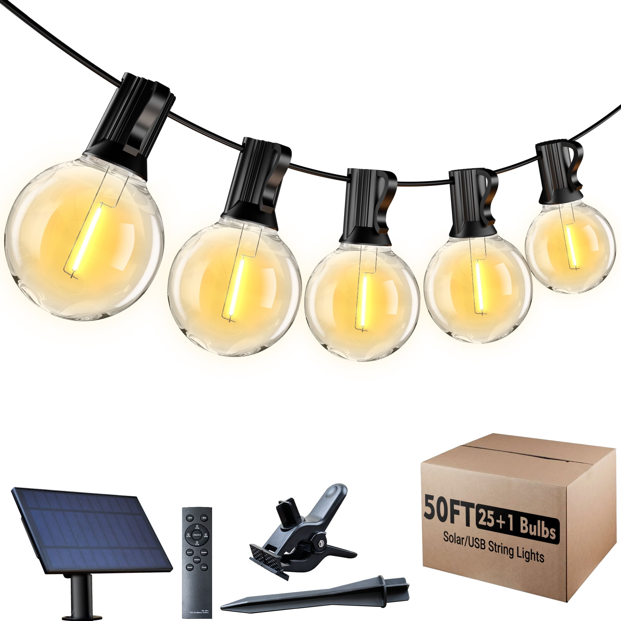 50FT Solar String Lights for Outside – Multicolor & Warm White G40 LED ...
