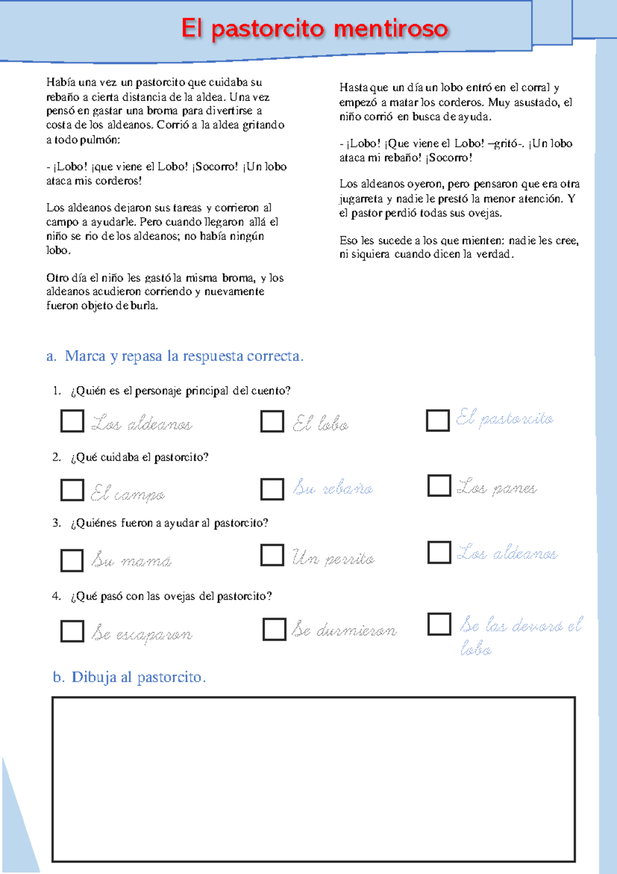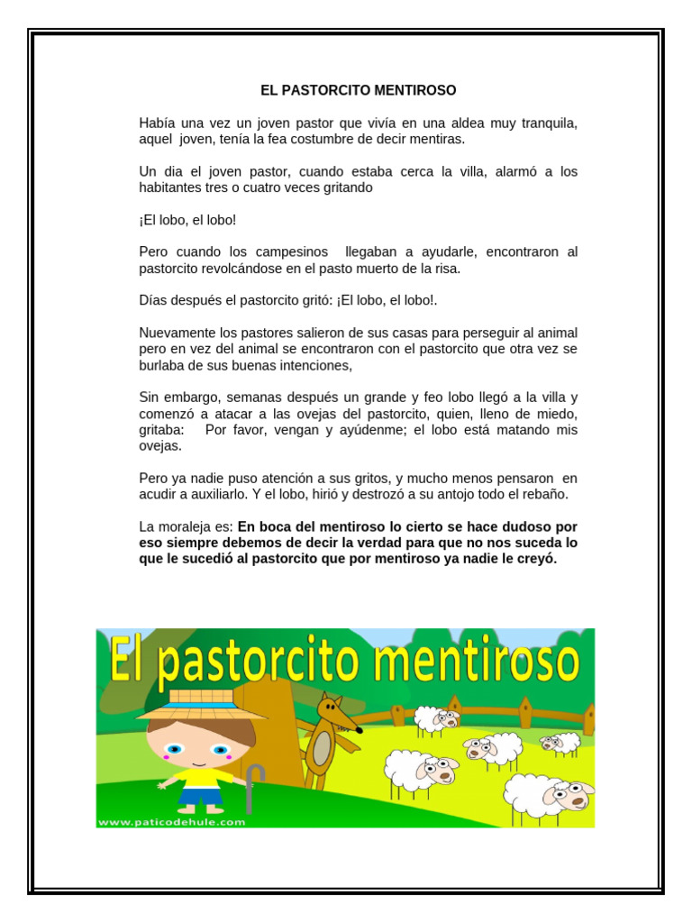 El pastorcito mentiroso: Comprensión lectora y actividades - Studocu