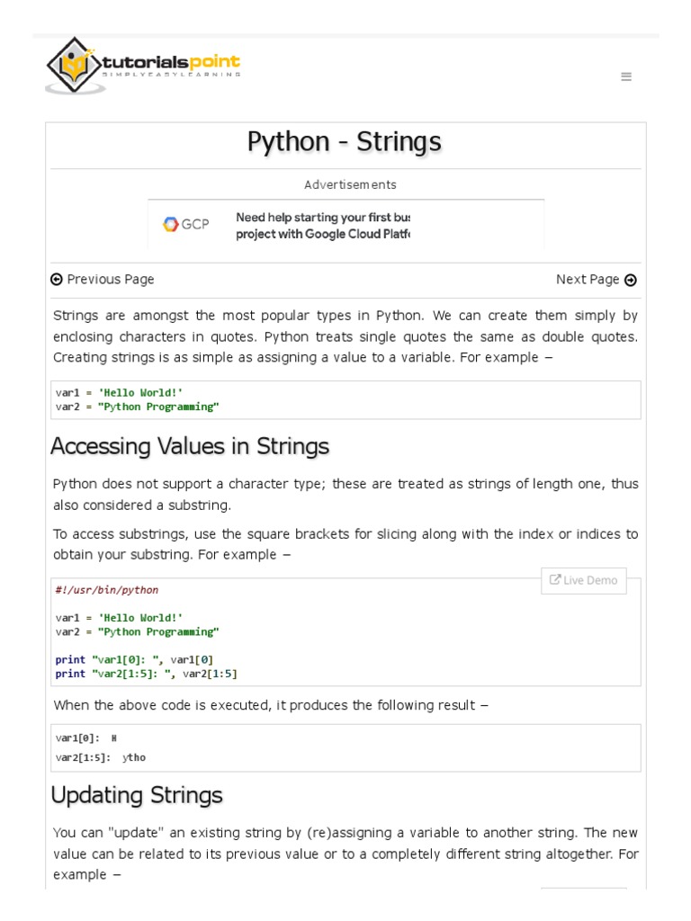 Python - Strings: Accessing Values in Strings | PDF | String (Computer ...