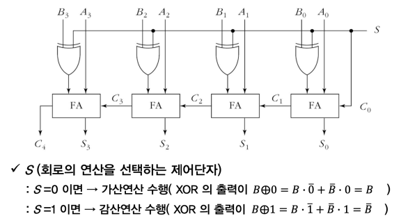 5 비트 2의 보수를 이용한 이진 정수의 덧셈및 감산기를 동시에 수행할 수 있는 가감산기기타레포트