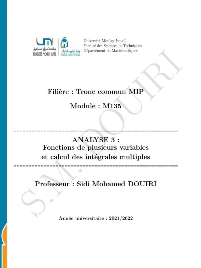 Douiri - M135 - Notes de Cours - 21-22fonctions de Plusieurs Variables ...