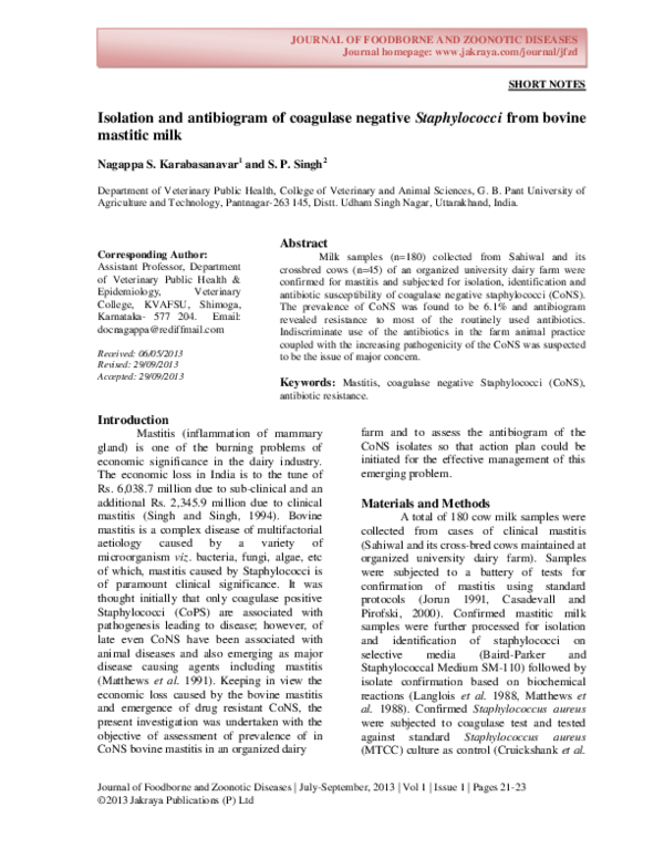 (PDF) Isolation and antibiogram of coagulase negative Staphylococci ...