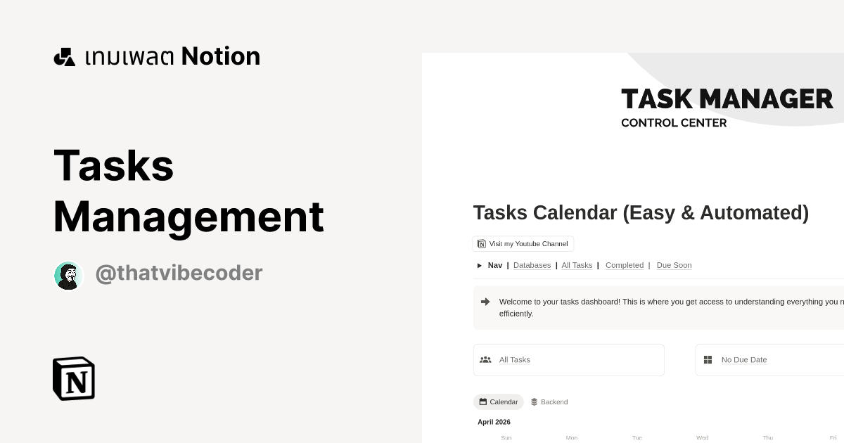 เทมเพลต Tasks Management | มาร์เก็ตเพลส Notion