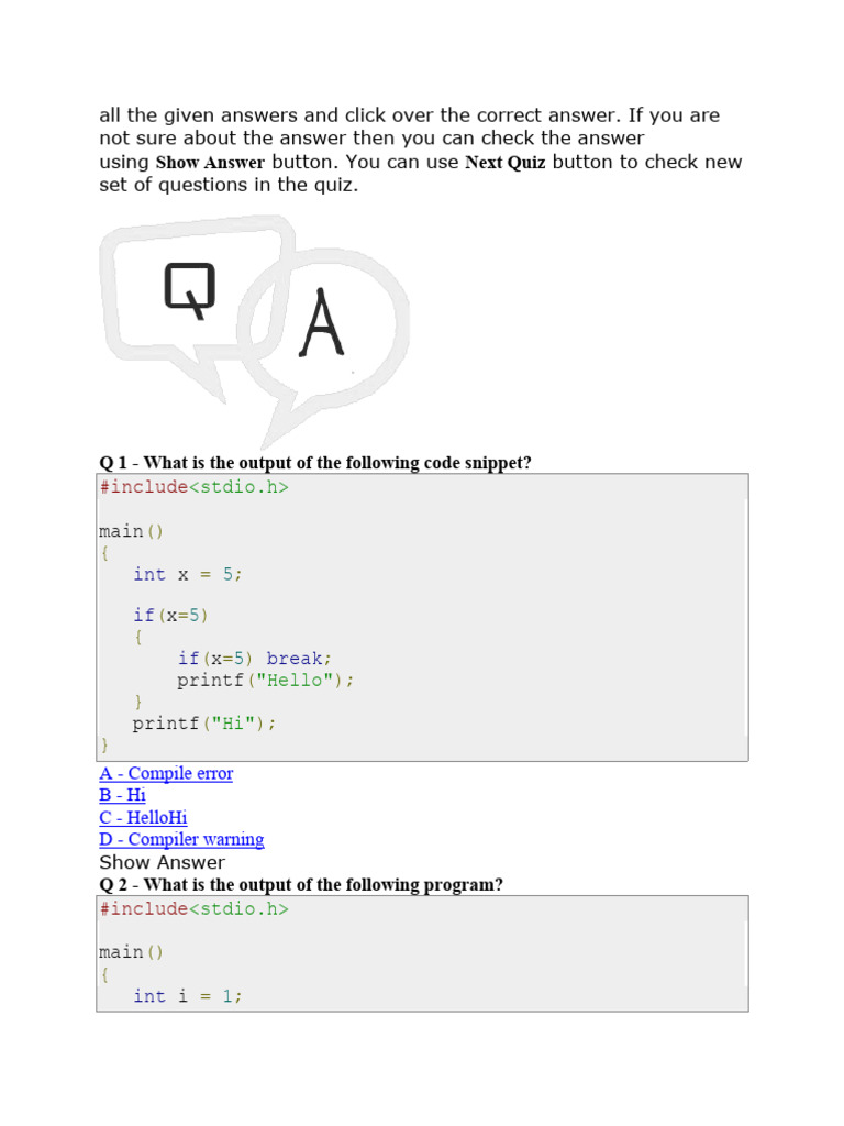 Q 1 - What Is The Output of The Following Code Snippet? | PDF