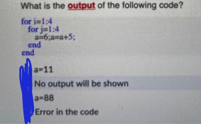 Solved What is the output of the following code? for i=1:4 | Chegg.com