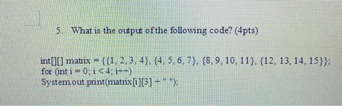 Solved 5. What is the output of the following code? (4pts) | Chegg.com