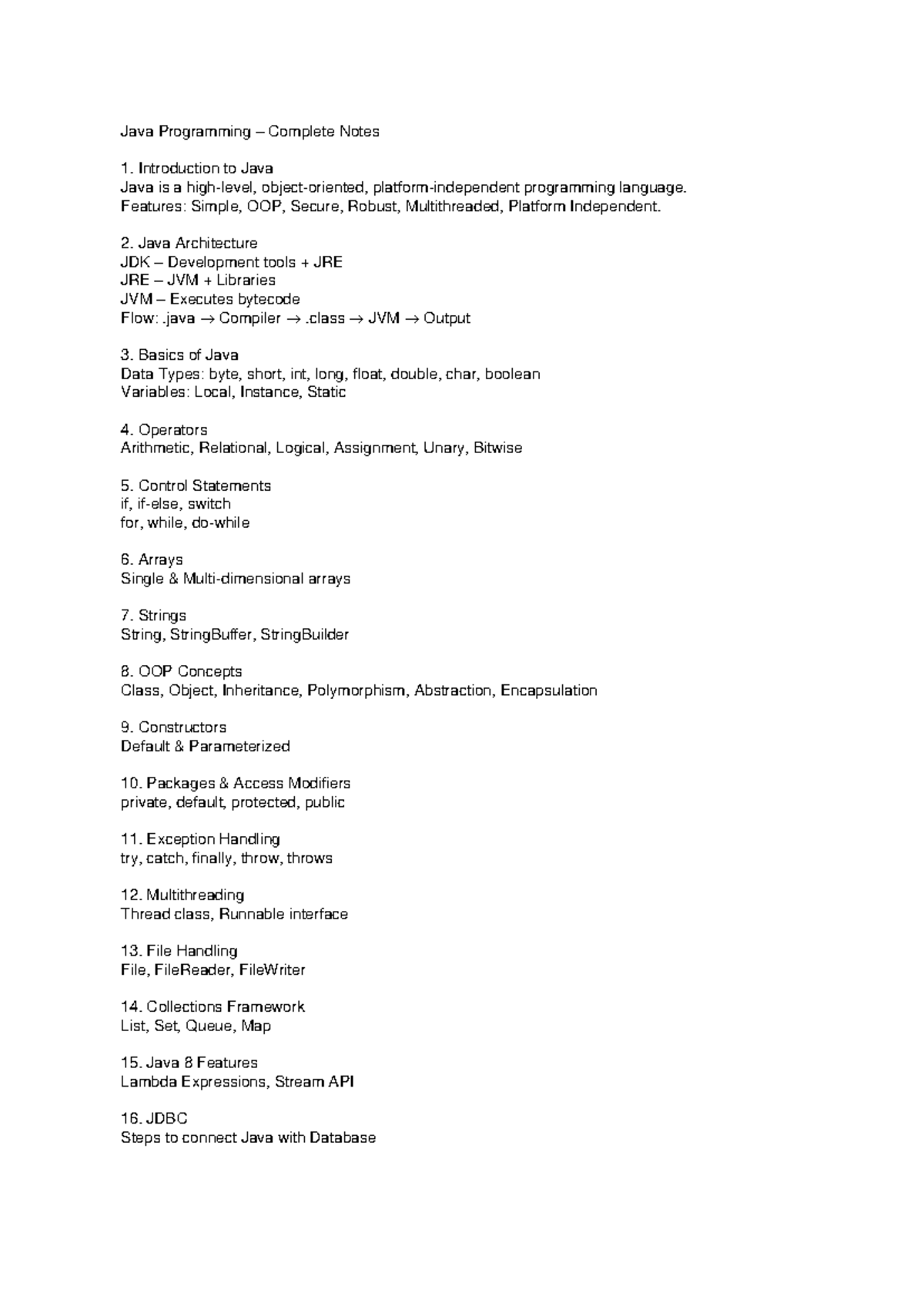 Java Programming Complete Notes: Introduction to Java Concepts - Studocu
