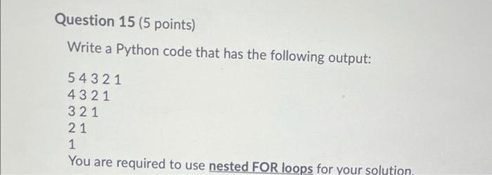 Solved Question 15 (5 points) Write a Python code that has | Chegg.com